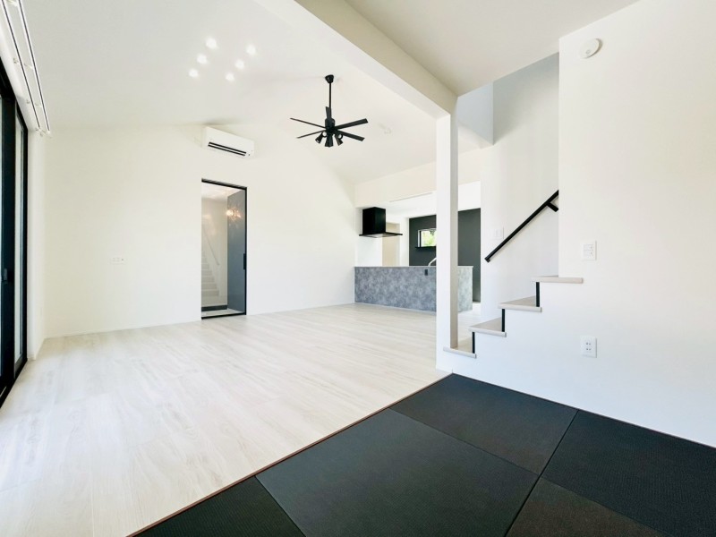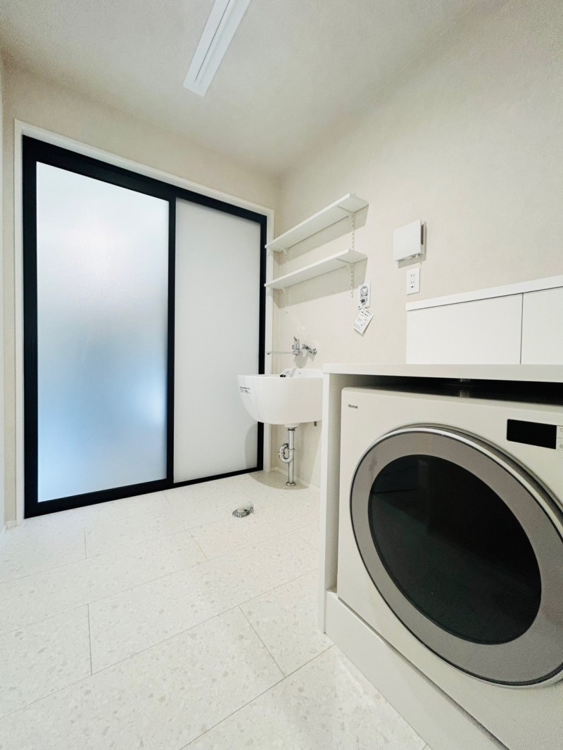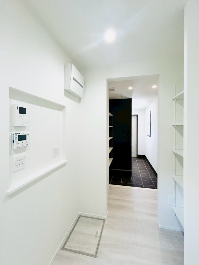 室内は白を基調にモノトーンでまとめ、洗練されたモダンな雰囲気に仕上げています。