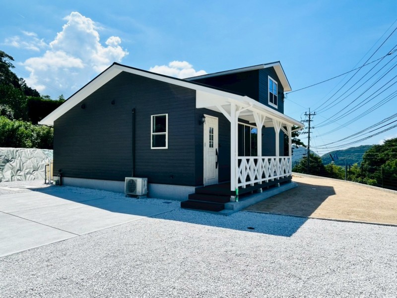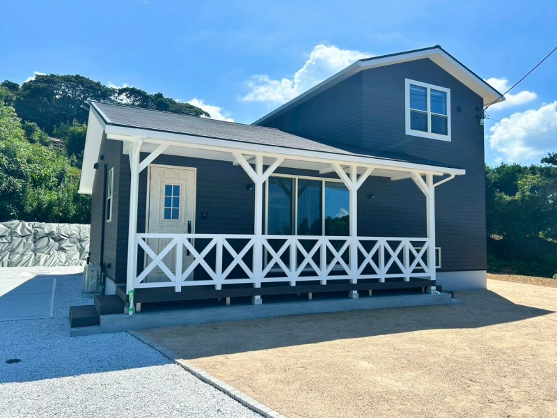 外観はチャコールの外壁に白のアクセントを効かせ、爽やかなカリフォルニアテイストに。