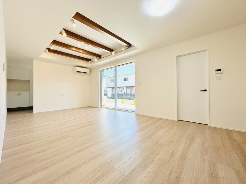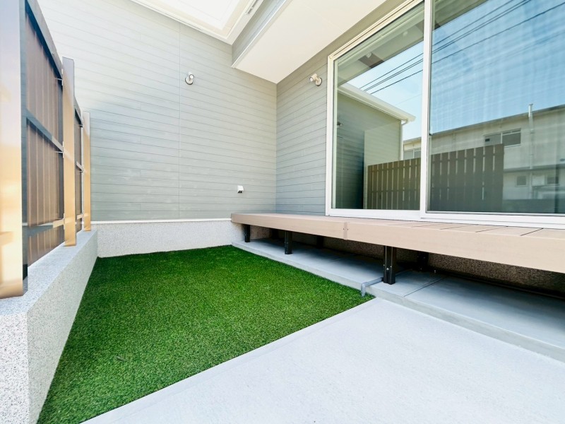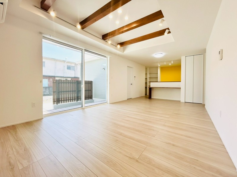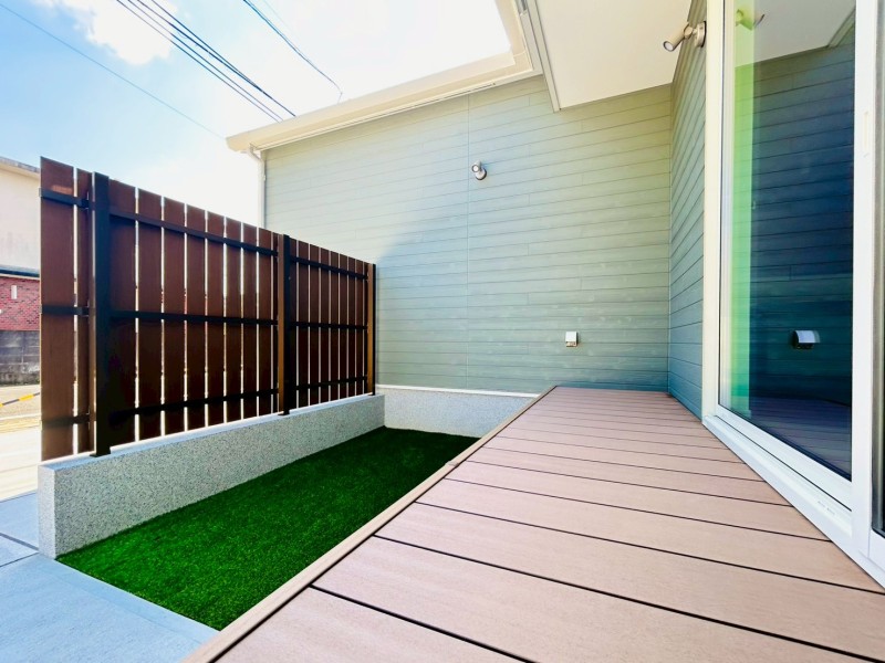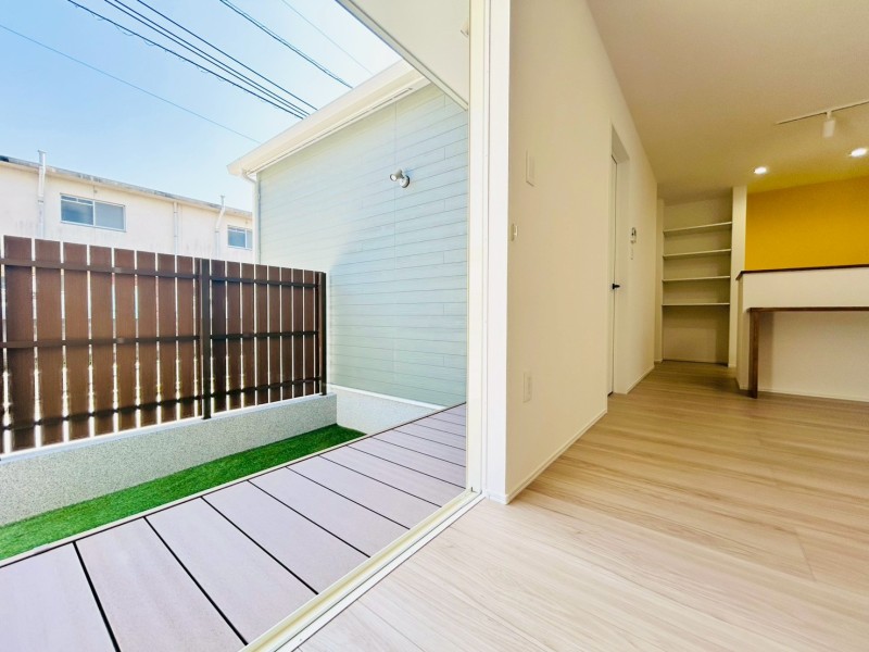 LDKから広がるウッドデッキは、リビングの延長として小さなプライベートテラスへ。