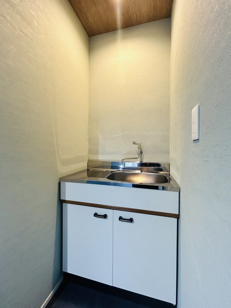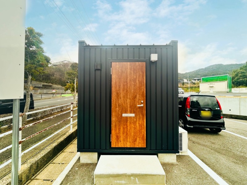 コンテナ内はおよそ8帖ほどの広さで、トイレやミニキッチンも完備。